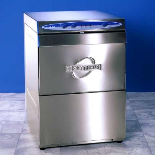 Lave verres, Panier carré 350 x 350, avec Adoucisseur.Commandes mécaniques très simples d'utilisation Double filtre de protection de la pompe de lavageFaible consommation en eau et en énergieRéduction de la puissance de cuve grace au fonctionnement indépendant des résistances de cuve et de surchauffeurConstruction tout inox 18/10Porte a double paroiArrêt automatique du cycle a l'ouverture de porteDoseur hydraulique de produit de rincageBras de lavage : polymères et matériau composite, garantissant a la fois légèreté et résistance aux attaques chimiques des détergentsFormes et dimensions des buses garantissant la constance de la pression et de la portée des jetsBras démontables et remontables rapidement et facilementpar clips pour un entretien ultra-simplifiéMeilleure distribution de l'eau dans le panier